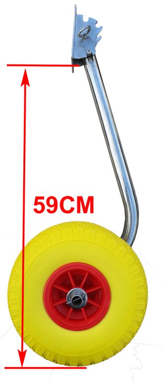 Транцевые колеса для лодок с надувным дном низкого давления. Удлиненная стойка. ЛИТЫЕ колеса. Поворотно-откидные. Трехпозиционные. Нержавеющая сталь. Максимальная нагрузка 130кг. Колесо 260*80мм Автоматическая система фиксации положения (3 позиции).